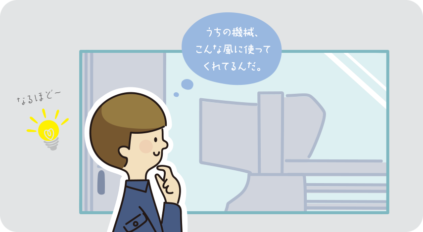 私たちの仕事では、お客様にご使用いただいてる製品をベストな状態に保つことが重要です。その為に、時には難しいメンテナンス対応を行うこともあります。難しいメンテナンス対応で修理方法を悩んだり、思った以上に時間がかかったりすることもありますが、訪問したお客様から帰り際に、思いがけず「本当にあなたが担当者で良かった。いつも助かっています。」とお声がけいた時にはお客様からの感謝と今までの頑張りを認めてもらえたという達成感で”頑張って良かったな”と思うことが出来ます。